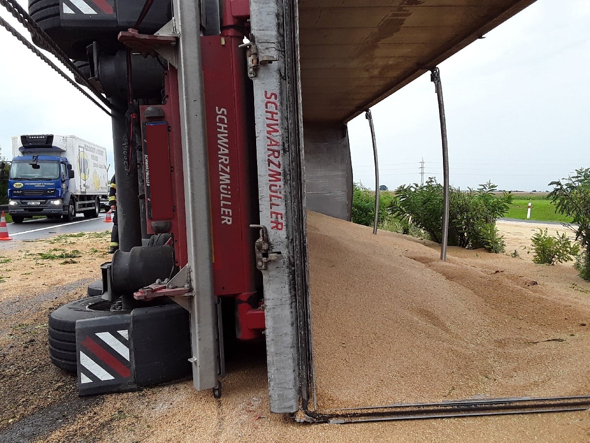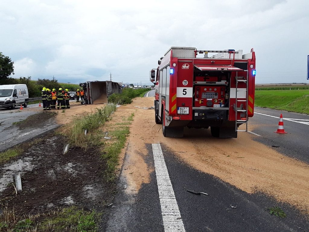 DomůZprávyRedakční zprávyNa dálnici u Roudnice se převrátil kamion, vysypala se pšenice