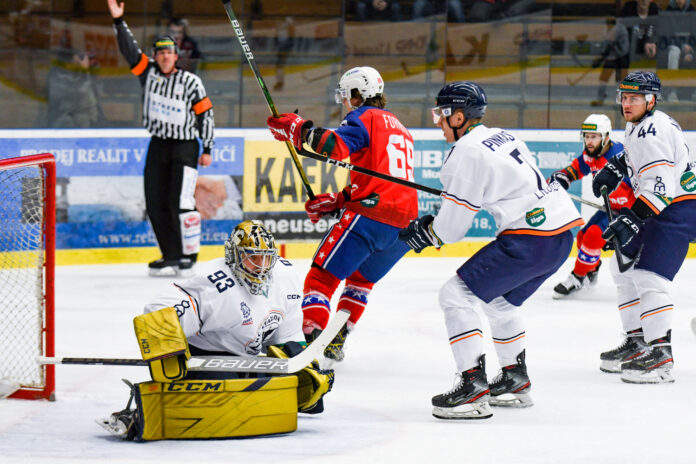 Třebíč – V minulém kole získali litoměřičtí hokejisté tři body po fantastickém obratu v domácím souboji se Slavií Praha. Tentokrát se představili v Třebíčí, kde je čekal přímý souboj o první příčku s místní Horáckou Slavií.
