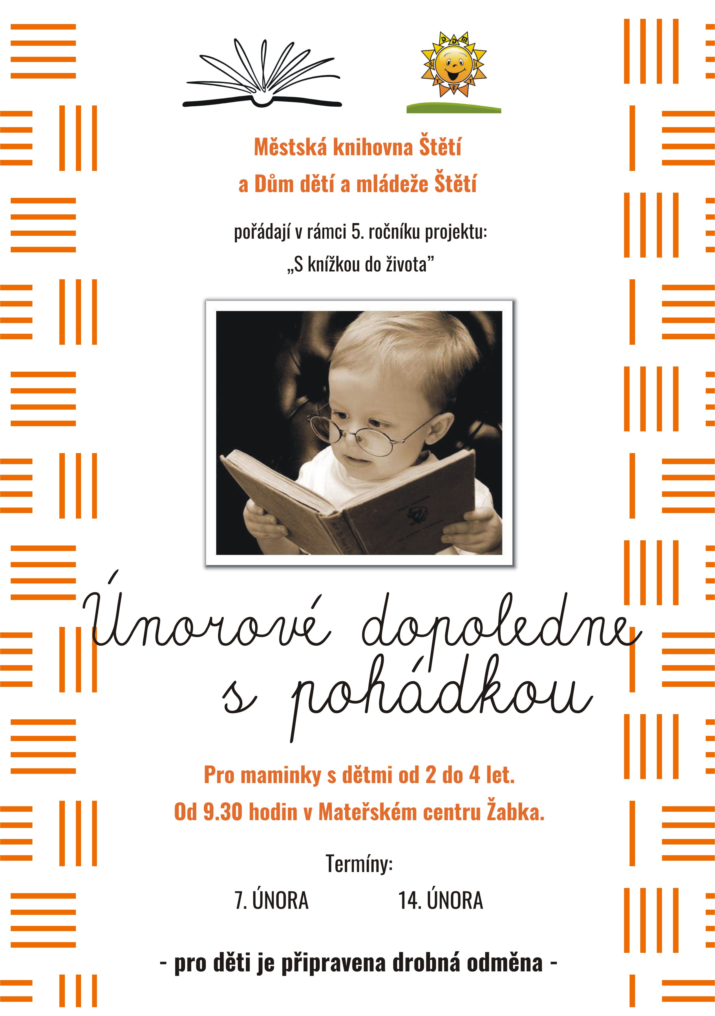 VIDEO: Děti, které čtou, mají slova vizuálně zafixovaná a rozšiřují si slovní zásobu. Zájem o knihu mohou mít i ti nejmenší z nás – i ti kteří ještě ani neumí číst. Právě pro ně a jejich rodiče pořádá Městská knihovna ve Štětí a Dům dětí a mládeže Štětí Únorové dopoledne s pohádkou. Jedná se o akci v rámci projektu „S knížkou do života.“ Tato čtecí dopoledne se konají 7. a 14. února, vždy od půl desáté v Mateřském centru Žabka.