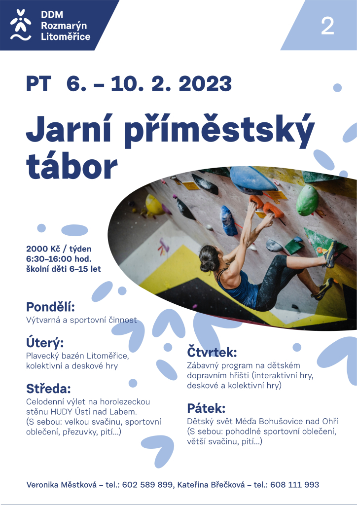 Vyplněnou přihlášku odevzdejte spolu s platbou na recepci DDM Rozmarýn. Přihlašování na příměstský tábor bude spuštěno v pondělí 9. ledna.