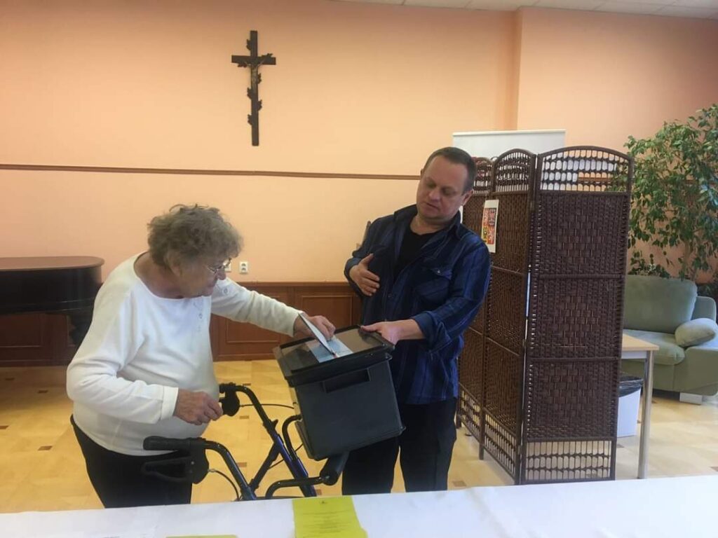 Někteří hlasovali ve společenském sále Domova, který se  pro tento den změnil ve volební místnost. Ti, kteří mají omezenou schopnost pohybu nebo zhoršený zdravotní stav, velmi ocenili možnost volit přímo ve svém pokoji.