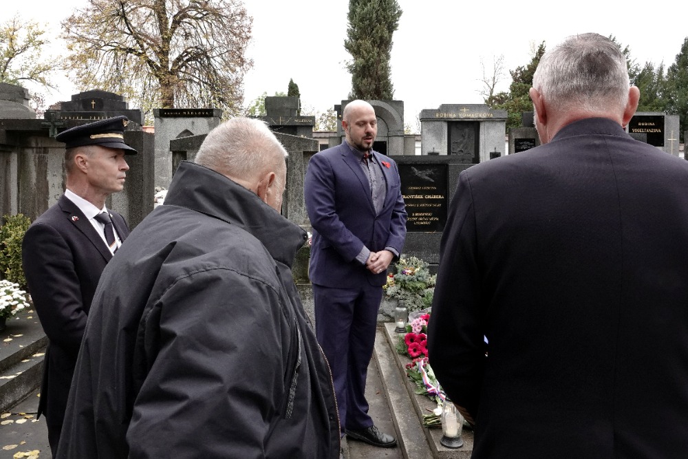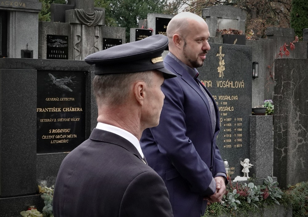 Litoměřice – Položením květin u hrobu a přeletem dvou armádních gripenů nad městským hřbitovem uctili v pátek účastníci pietního aktu památku válečných letců genmjr. Františka Chábery a pplk. Ladislava Valníčka. Stalo se tak u příležitosti blížícího se Dne válečných veteránů a nedávných výročí úmrtí obou letců.