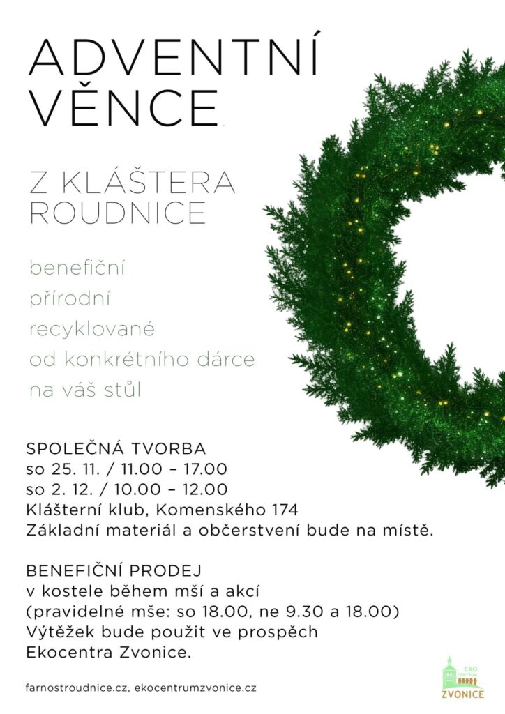 Roudnice nad Labem – Pokud rádi tvoříte rukama, máte srdce na správném místě a nebojíte se pomáhat, přijďte v sobotu 25. listopadu do Klášterního klubu v Roudnici nad Labem (Komenského 174) a zúčastněte se společné výroby benefičních adventních věnců. Vyrábět se bude po celý den – od 11 do 17 hodin.