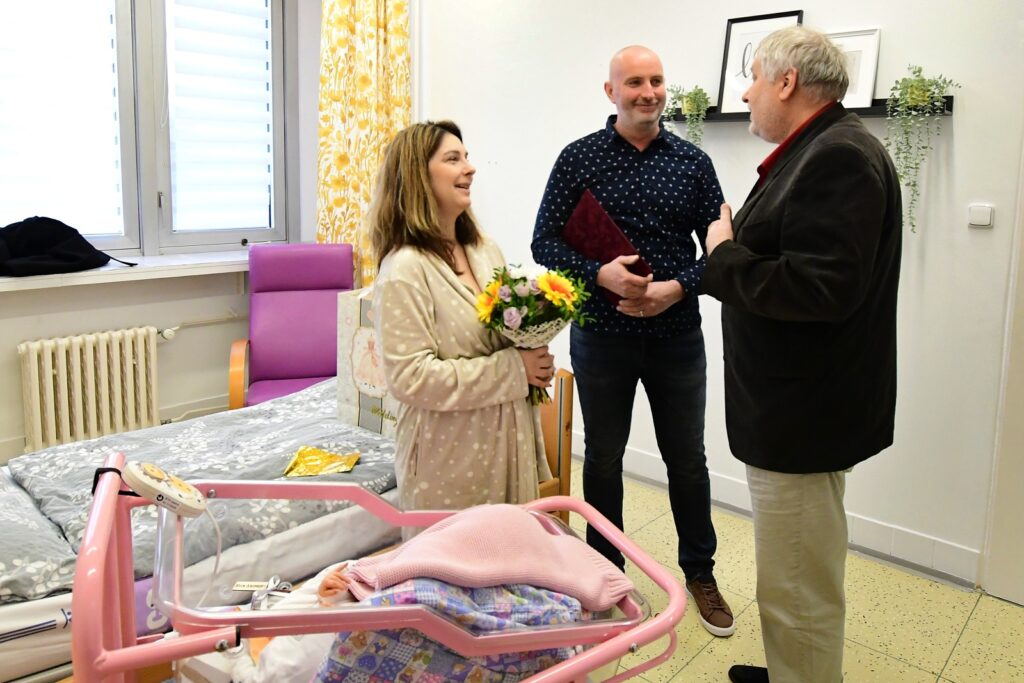 Litoměřice – Zlatý šperk v podobě řetízku s přívěskem a pamětní list dostala na památku od města Litoměřice holčička Eliška, která se v tomto roce stala prvním miminkem narozeným v litoměřické nemocnici. Na svět přišla 1. ledna ve 3,38 hodin.