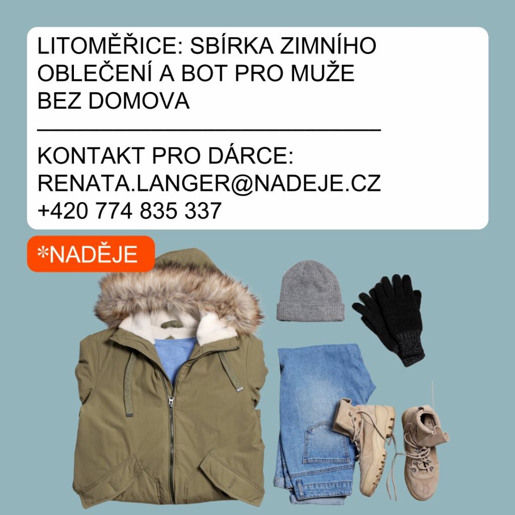 Litoměřice Terénní program litoměřické pobočky NADĚJE aktuálně shání teplé zimní oblečení a boty pro muže bez domova. Hodí se rukavice, čepice, šály i bundy! Zima udeřila v plné síle a život venku je teď velmi náročný.