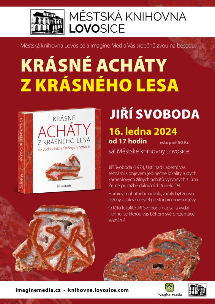 Lovosice – Do Lovosic v úterý 16. ledna zavítá místní patriot a autor mnoha knih (nejen) o Českém středohoří – Jiří Svoboda. Na besedě, která začíná v 17 hodin v městské knihovně, veřejnosti představí svou nejnovější publikaci – Krásné acháty z Krásného Lesa. Kniha bude na místě k zakoupení.