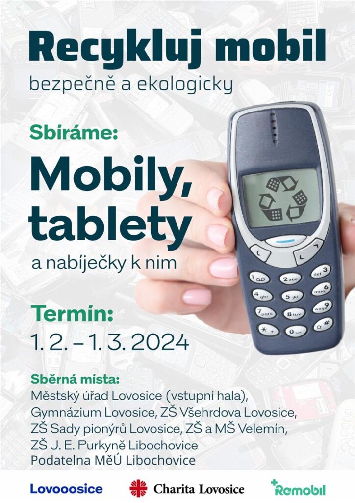 Mobily můžete odevzdávat na těchto místech: Městský úřad Lovosice (vstupní hala), Gymnázium Lovosice, ZŠ Všehrdova Lovosice, ZŠ Sady Pionýrů Lovosice, ZŠ a MŠ Velemín, ZŠ J. E. Purkyně Libochovice, podatelna Městského úřadu Libochovice.