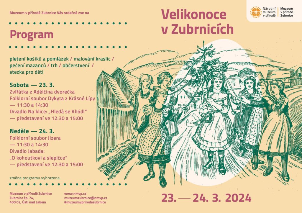 Po zimní přestávce zahajuje turistickou sezónu také Zubrnická museální železnice, která posílí spoje historických vlaků na turistické lince T3 Ústí nad Labem-Střekov – Zubrnice právě v době konání Velikonoc v Zubrnicích. Na nádraží bude otevřeno i železniční muzeum.
