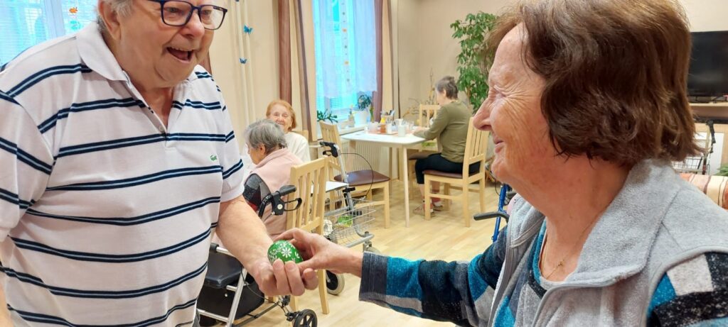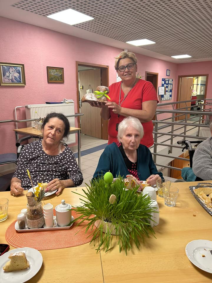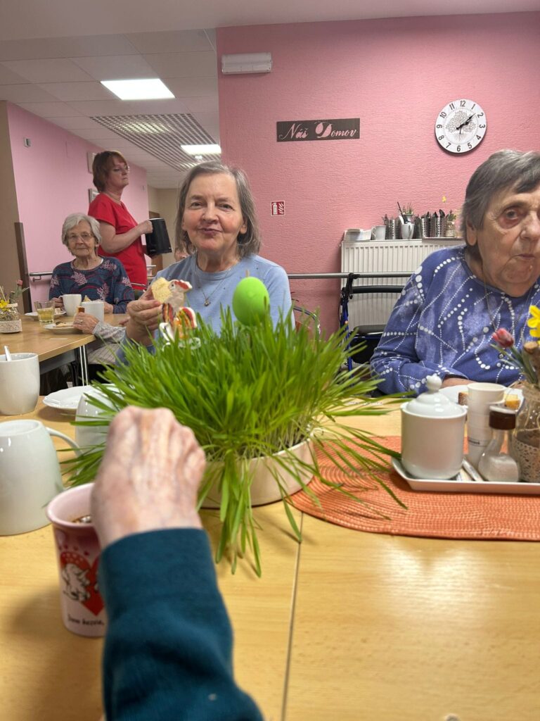 Nechybělo ani pečení typického velikonočního beránka, na kterém si klienti pochutnali při odpolední kávě, horká čokoláda se šlehačkou a v závěru velikonoční pomlázka, které se zhostil zdejší klient – pan Jiří. Všechny dámy na oddělení pro něj měly připravenou odměnu.