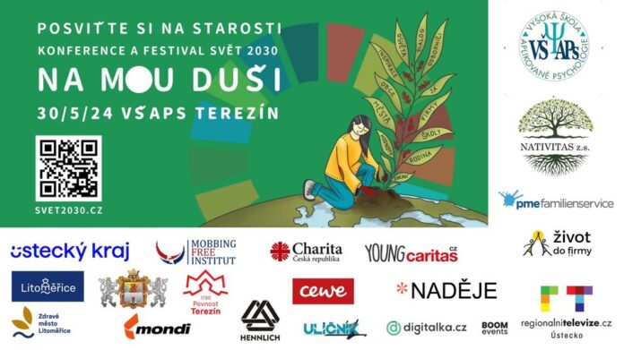 Již ve čtvrtek 30. 5. proběhne na terezínské VŠAPs festival Svět 2030: Na mou duši. V letošním 3. ročníku budou účastníci společně řešit otázky duševního zdraví člověka v dnešní společnosti a hledat odpovědi. Zhoršující se duševní zdraví bije na poplach a péče o něj se stává prioritou. Pozvání přijali vzácní hosté a odborníci. Festival chce přispět k naplňování cílů udržitelného rozvoje SDGs OSN a zvyšování kvality života lidí. Přijďte zjistit, jak o sebe pečovat, co pro to můžou dělat různé organizace. Užijte si den bez starostí s inspirativními lidmi. Na mou duši. Proč se festival pořádá?