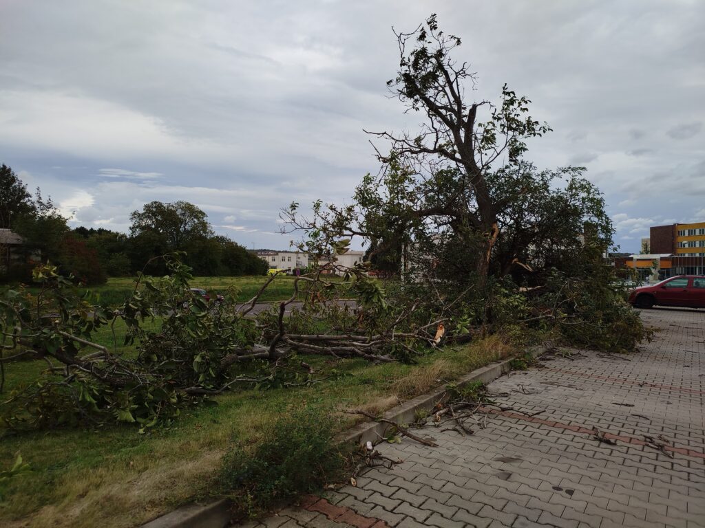 Litoměřice – Hasiči a Městská policie Litoměřice dnes řešili (kromě jiného) také padající strom na parkovišti u nemocnice. Strom poškodil zde zaparkovaná vozidla.