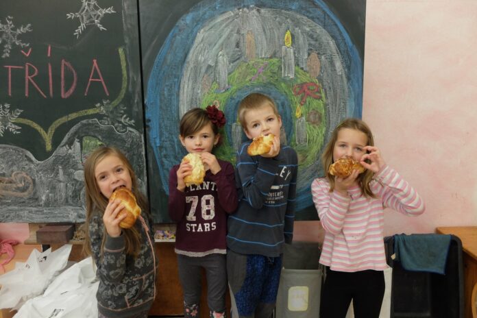 Zatímco její starší bratr měl snad i radost, pokud byl nemocný a nemusel do školy, ona je schopná vstávat už v šest a tahat mě z postele, a to přestože prvňáčkům v Třebušíně začíná vyučování až v devět hodin. V klidu stihneme společně posnídat a jdeme na autobus. Jedna z mých největších obav, kterou jsem měla, než jsme se pro třebušínskou Svobodnou základní školu, o.p.s. rozhodli, totiž jak vše budeme logisticky zvládat, se ukázala být naprosto lichá. Autobusové spojení a cesta s doprovodem dospělého zaměstnance školy jsou perfektní a obzvláště v době, kdy se ceny pohonných hmot šplhají na pro rodiny neúnosnou výši, jízdné 6,- považuji za jeden z mnoha benefitů, které „tak trochu jiná škola“ nabízí.